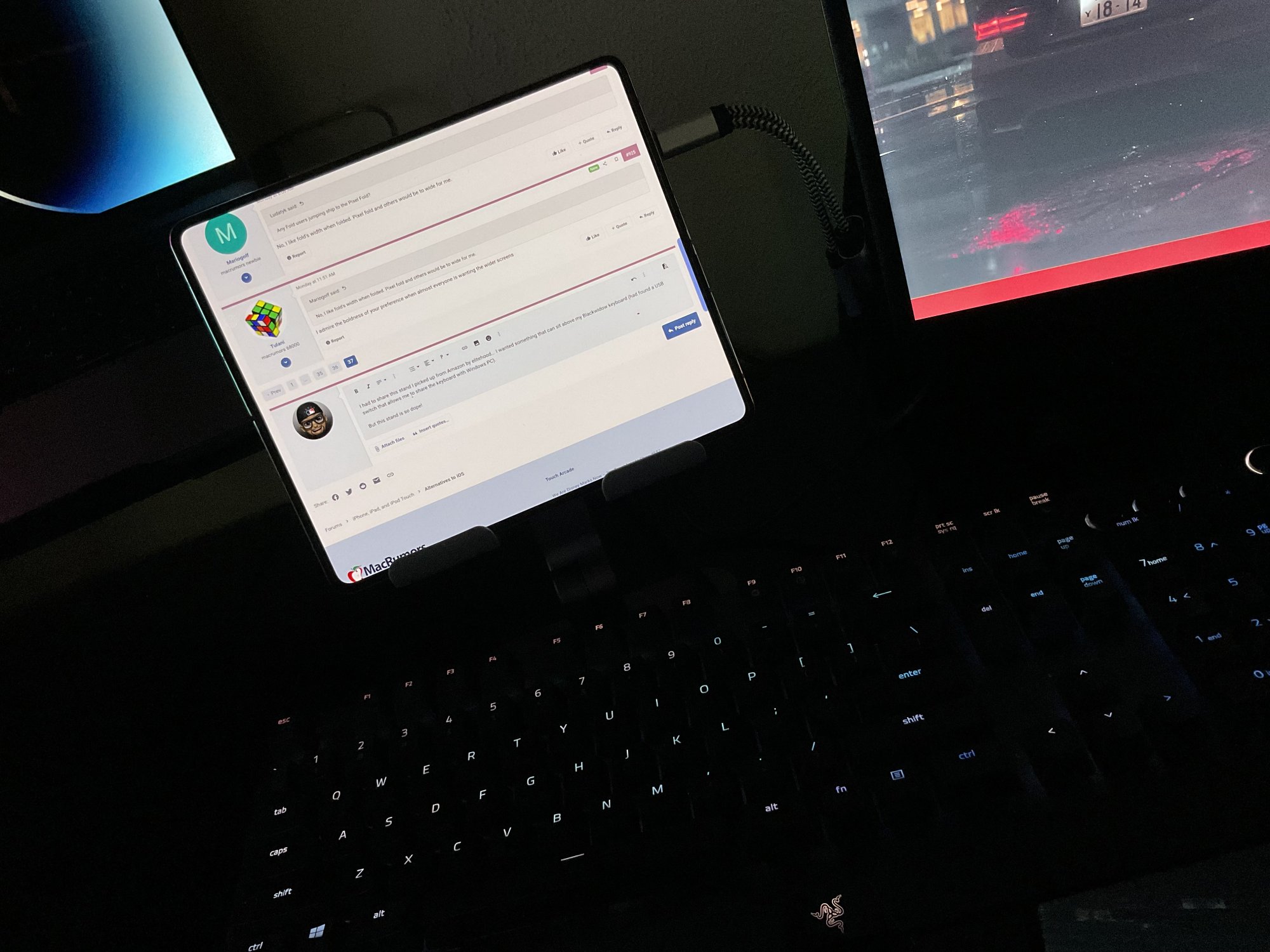 I had to share this stand I picked up from Amazon by elitehood... I wanted something that can sit above my BlackWidow keyboard (I have a USB switch that allows me to share the keyboard with my Windows PC).
