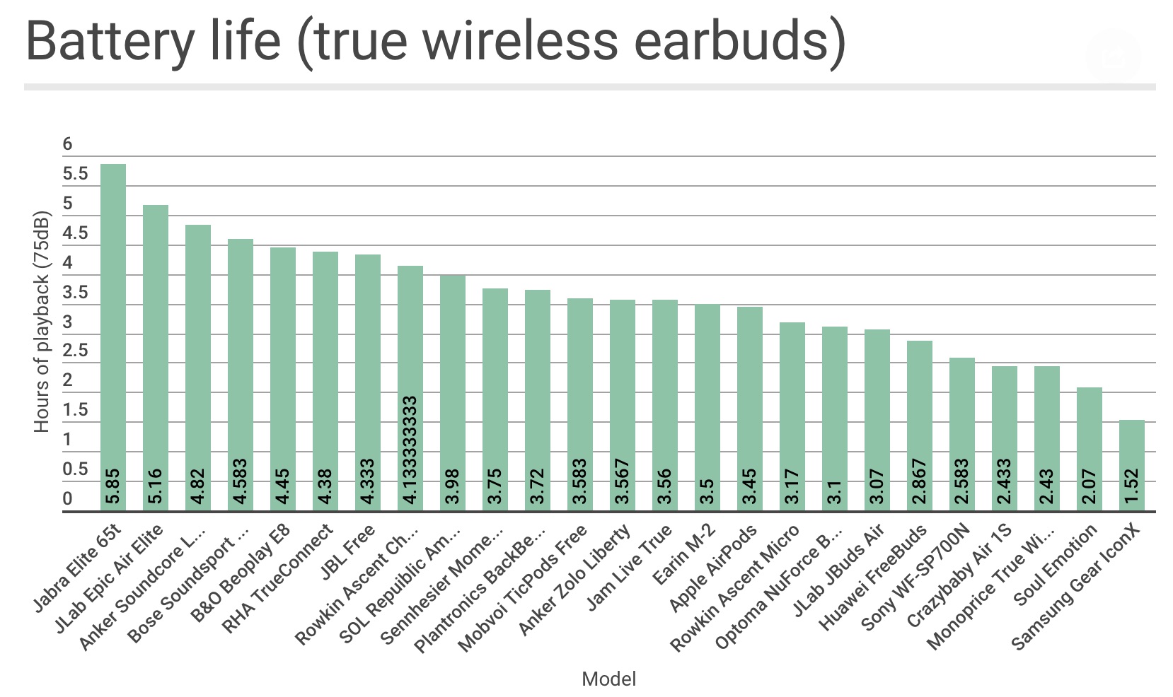 Say the average user listens to music or podcasts for for 1-2 hours at a time. In this case, it doesn't really matter whether the AirPods last 5 or 10 hours, so long as it is fully charged in the case by the time the listener next wants to use it again. At this point, boasting the longest continuous playback duration is a pretty meaningless statistic which has little actual benefit to the end user in real-world usage, when in reality, the AirPods would actually allow the user to go for longer periods in between without recharging.