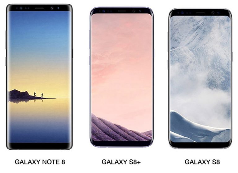 Here is the S8+ and 7+ side by side, they don't have the Note 8 yet as it hasn't been announced. But this site lets you compare phones side by side