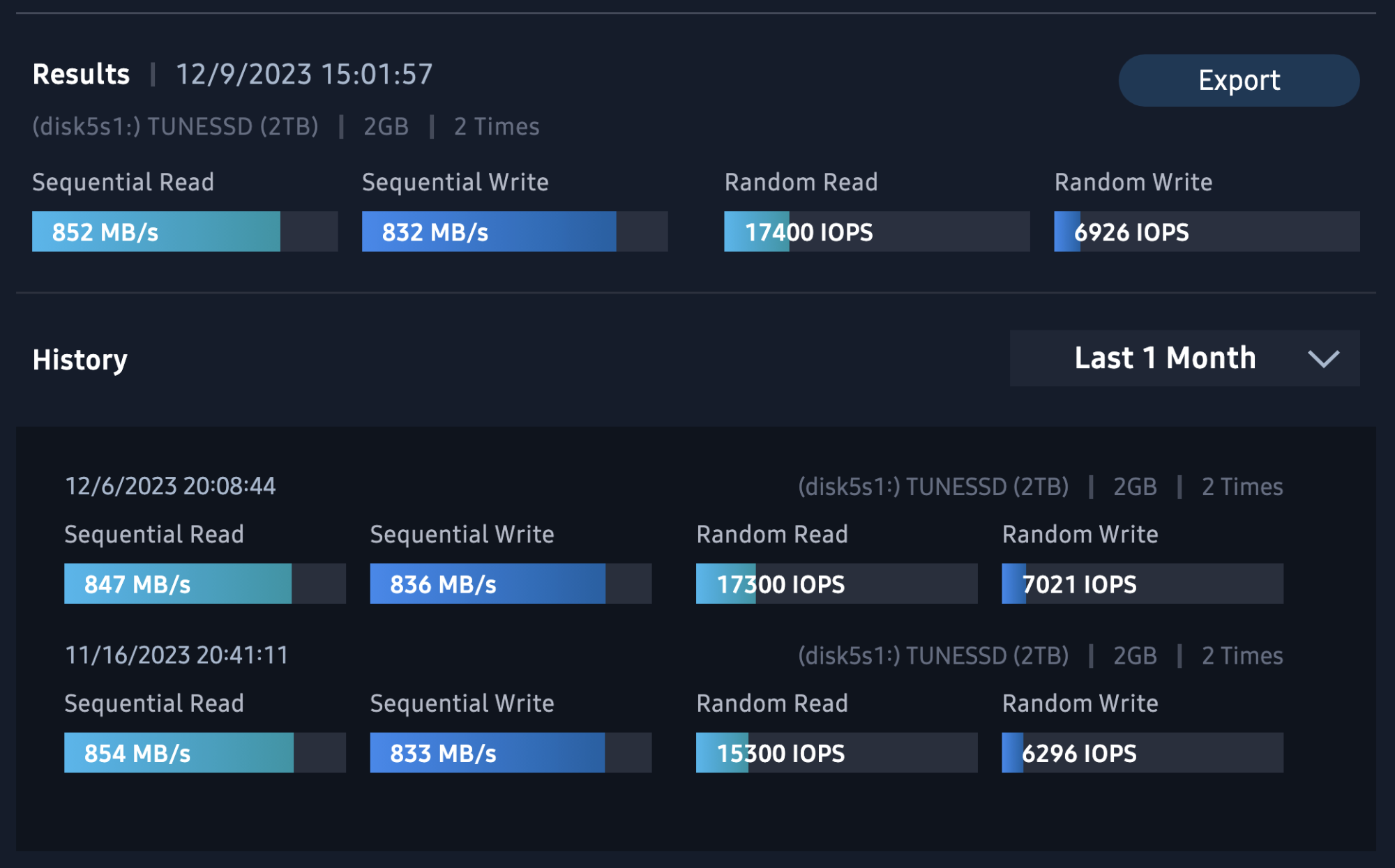 On my 2023 M2 Macbook Pro 16" reliably get 700 MB/s.