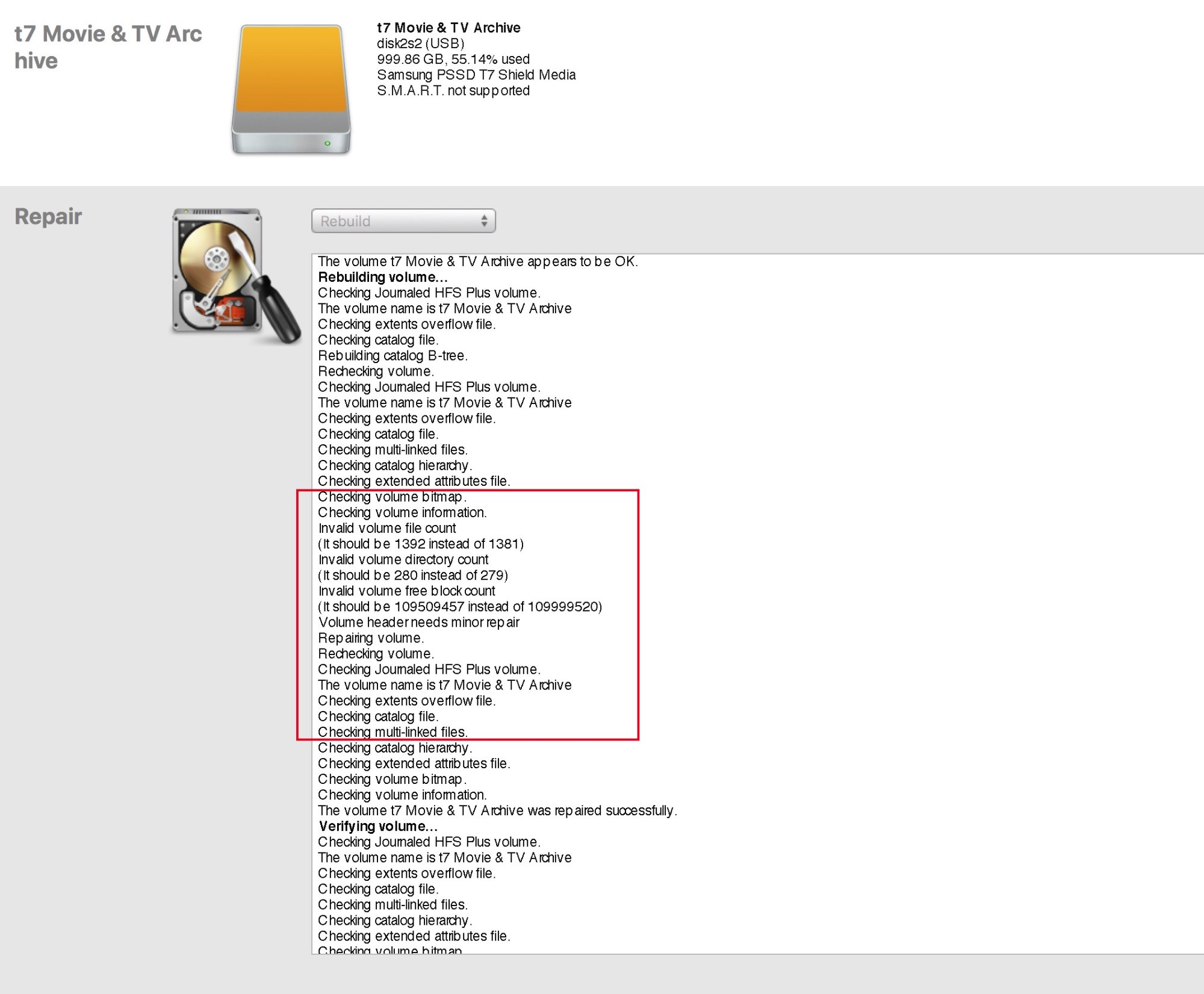 Then, I discovered that if took an old copy of Drive Genius (v.3), and used the "rebuild" feature, it would note some irregularities: