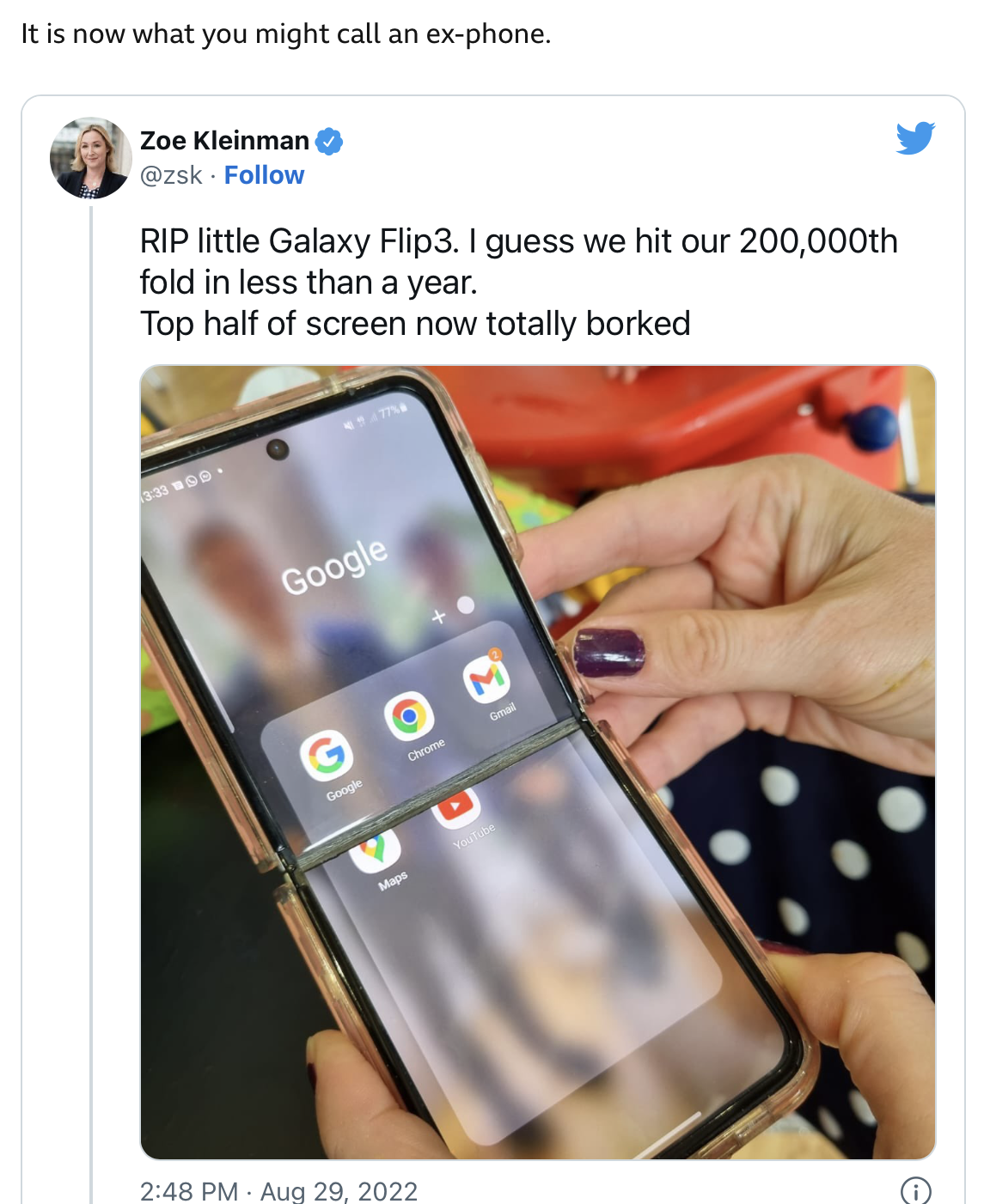 I should be careful with what I say. Back in the beginning of smartphones, I laughed at the idea of a calculator sized thing in my pocket. My first smartphone was the HTC Evo. I thought it was huge, but it was just a baby. I now get the largest screens that I can find because my eyesight ain’t what it once was. That said, I can’t ever imagine myself interested in a folding phone. I would spend all of my time worried about it breaking. To me, the whole idea just seems bad.