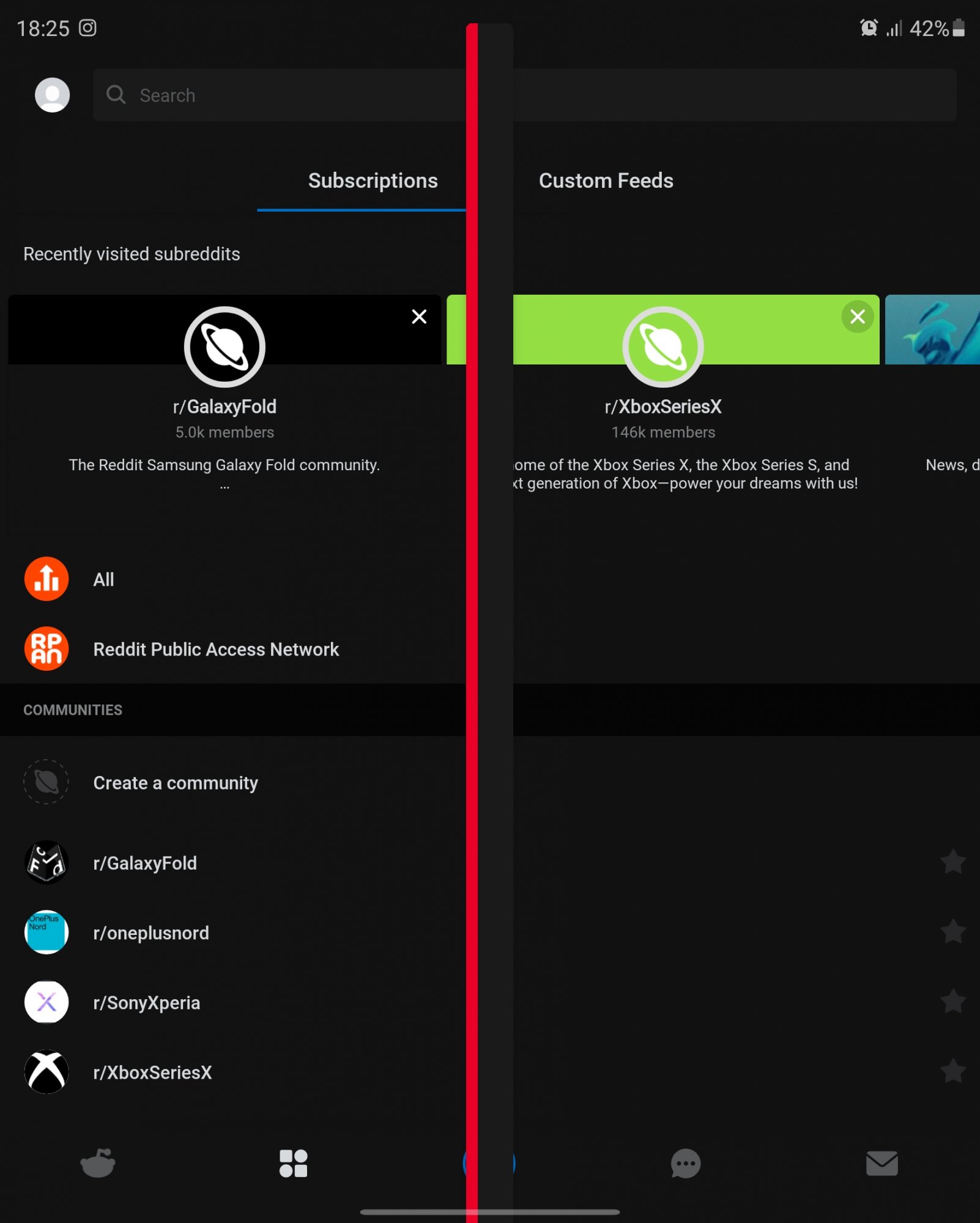 I opened Reddit and there was big red line down the middle of the app. I panicked thinking it was my screen - but it was just the app. I force closed it and it was then fine. Again - odd.