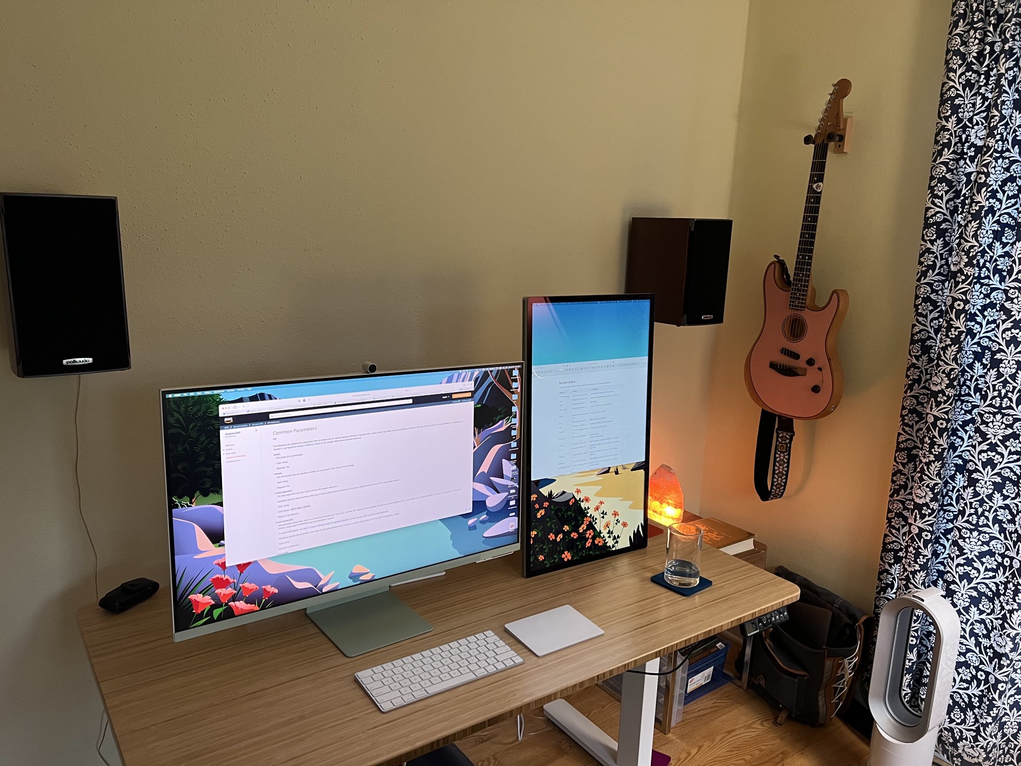 The Samsung M8 arrived two days ago and is…larger. Design is tasteful, but it looks and feels plasticky. Speakers are regular crappy speakers—fine for meetings but I wouldn’t use them for music. Colors are washed out in comparison. I’m sure it looks good compared to other regular monitors but next to the Studio Display it is not impressive. The webcam is decent: better than the one built in to my 2019 MacBook