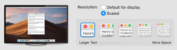 So back to the claim that a non-integer scaled 4K screen would look rubbish. Well, even at 27" for a 2160p screen, it could be considered "Retina" at a seating distance of 21" or more. As mentioned, I already sit at 25", so that would be "Retina" for me. However, my preference is not to use a 27" 4K screen, for two reasons: 1) The screen elements and text sizing are larger than I need, and 2) I prefer to have more screen real estate. On my desktop I usually like to have two windows open at about 1150-1200 pixels wide each which means about 2350 pixels total, which leaves me about another 200 pixels for other stuff like my icons at the side of the screen. In that context, 2.5K/5K is perfect, whereas 2K/4K feels too cramped.