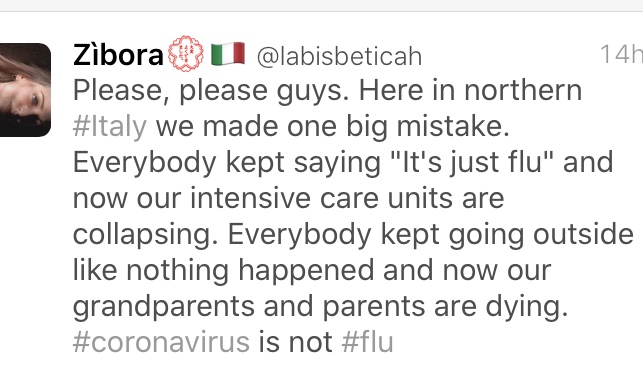 the entire country of Italy is on quarantine because of this possibility (and that their health care resources are stretched as is). Is that irrational? Or is it a reasonable precaution to try to prevent a ton of deaths?