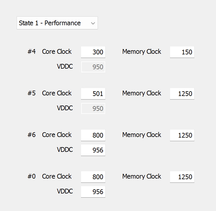In fact, you may also try this 800MHz @0.956V settings in Windows. And only use that if your card can run it stably (e.g. 15min Unigine Heaven loop. OCCT stress test is the best for stability test, but may be a bit too extreme).