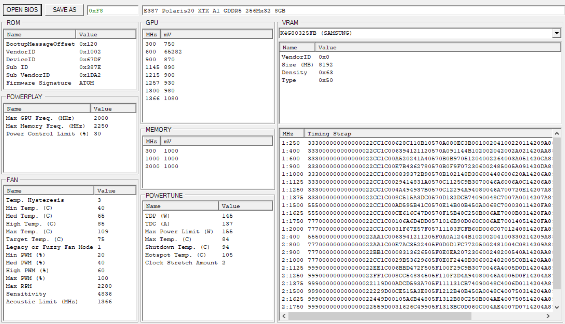 After finished, double check the numbers, then "SAVE AS" a new ROM image. e.g. RX580_mod.ROM (ALWAYS ONLY save as new ROM, NEVER cover your original ROM image)