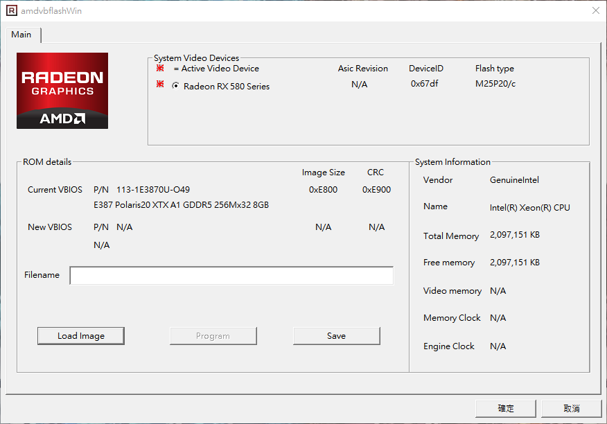 Click "Load image" to select "RX580_mod.ROM".