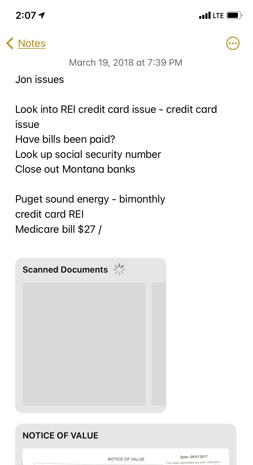 ).  I was using the brand-new "Scan to PDF" capability of Notes. Now, three years later, I need those scans, but when I view that note only some of the scanned attachments load and are visible.  Specifically, the single page scans seem to pop up just fine, and can be viewed on iPhone or iPad.  The multi-page scans... not so.  The multi-page scans just show the endlessly circling matchstick "workin' on it, Boss" icon, no matter how long I wait.  Interestingly, the single-page documents (that I can view) have titles that the Apple system has created by running OCR on the first line of the scanned PDF.  I know that at least some of the multi-page scans had hand-written notes on them, which makes me wonder if the failure is in some way related to difficulty in running OCR on the hand-written documents?