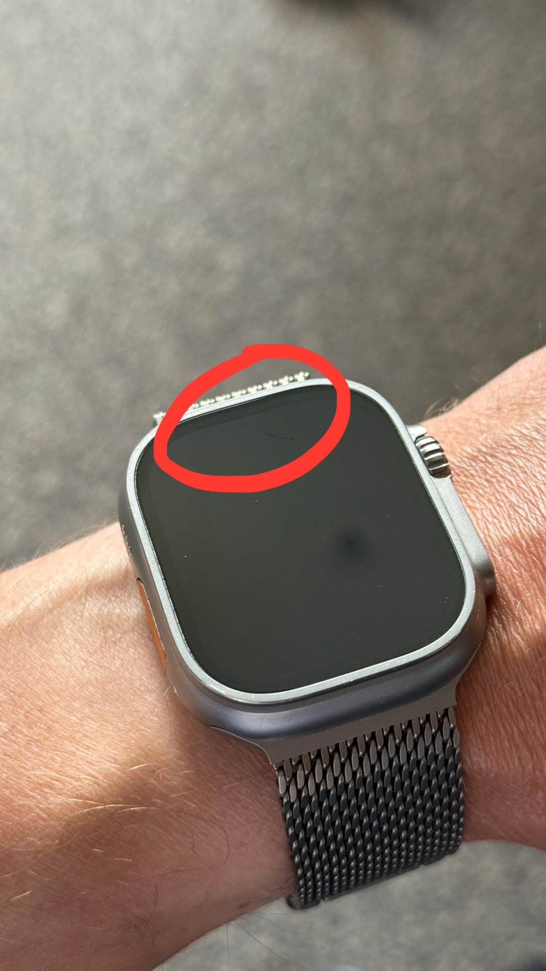 I have had my AWU for a couple of years and while there might be small hairlines on the case, the display has been flawless. That is until recently where I got this scratch in what seems to be the coating of the display and not the display itself. Nothing to feel with my nail or anything but very visible (and annoying me like hell! While I know 90% of people wouldn’t care)