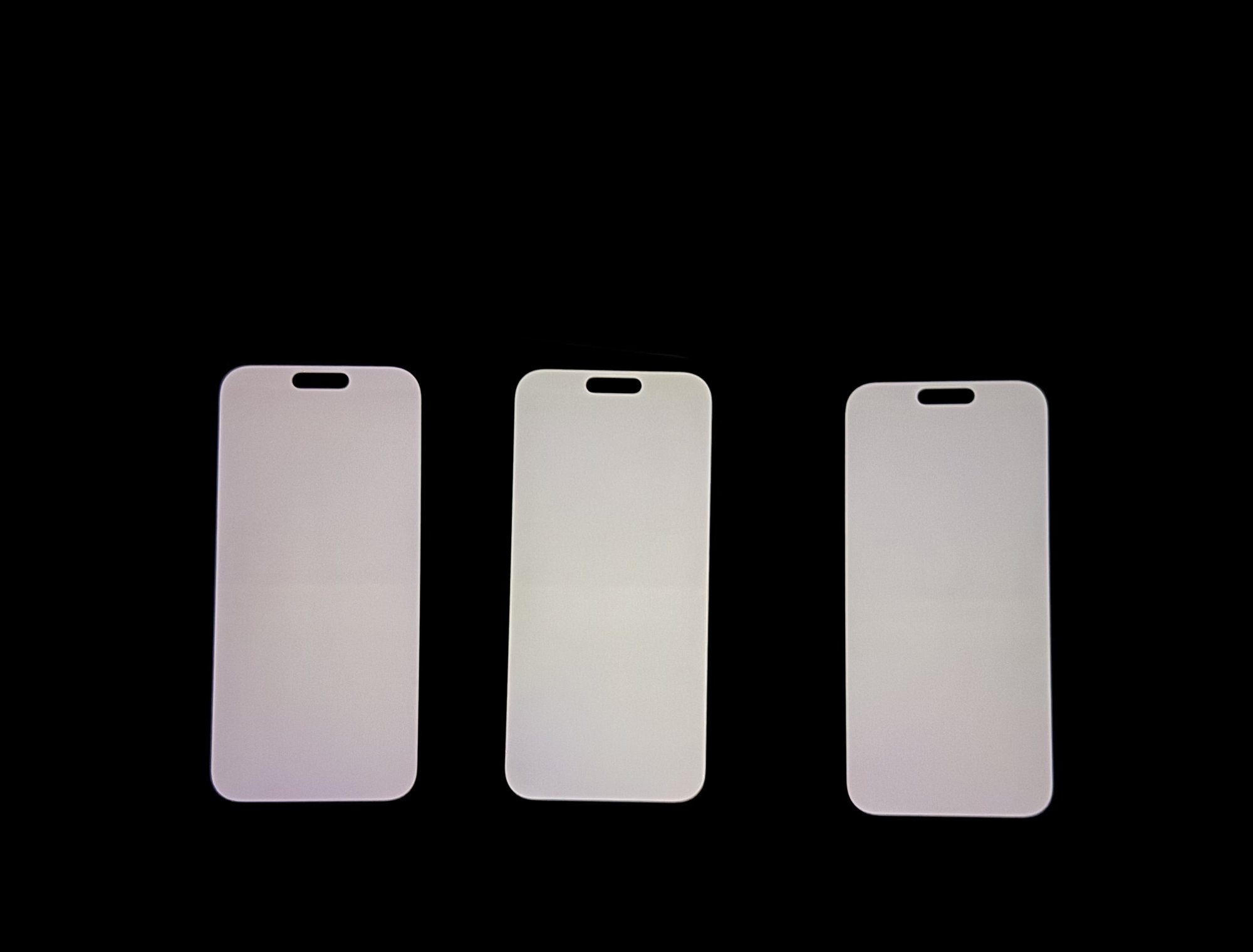 My 3 candidates. I kept the one on the right. Left one was decent but shifted red too much. Middle one was piss yellow even with True Tone off. The one on the right shifts blue/green which I prefer to shifting red.