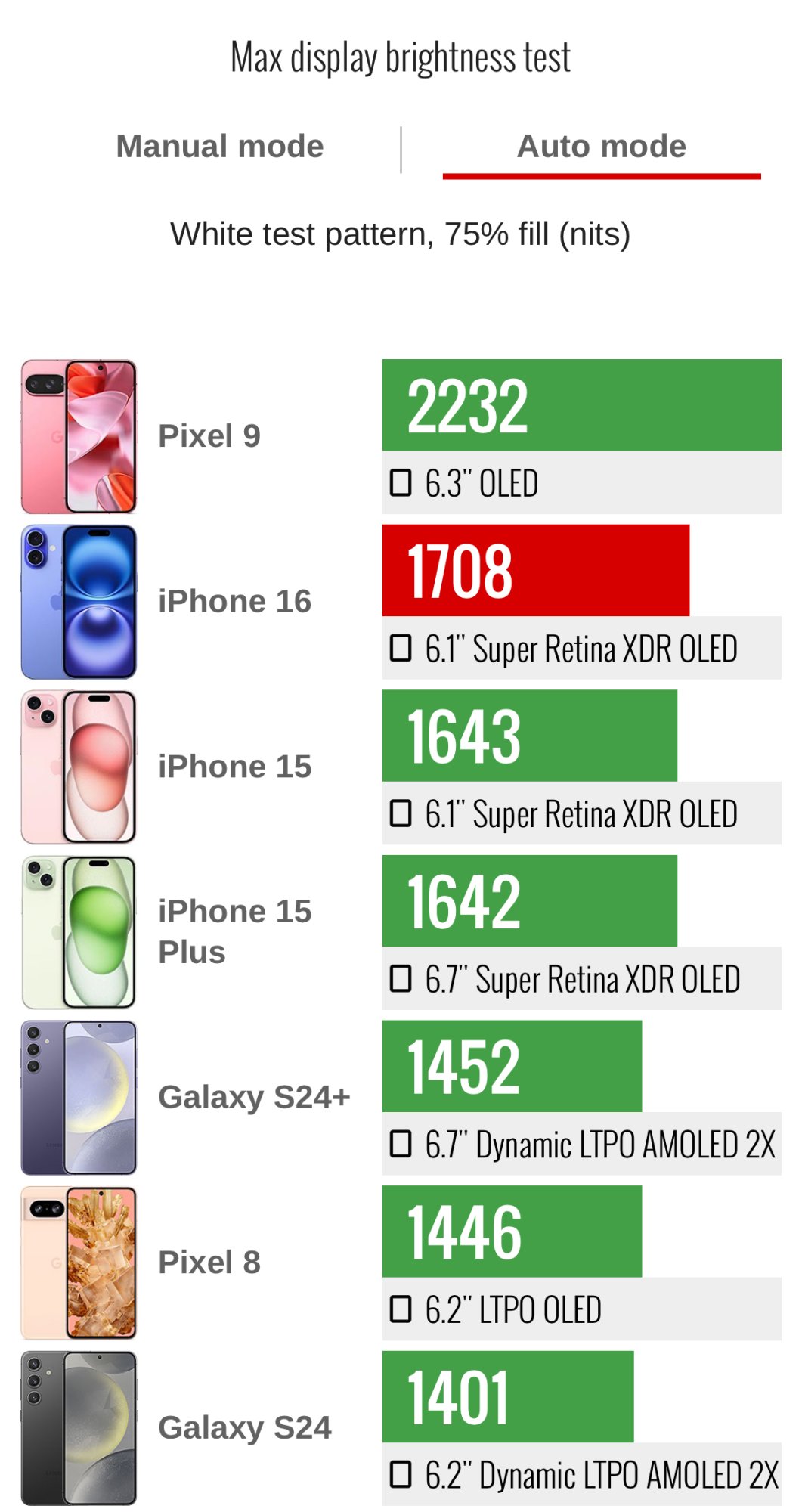In my testing, my 15Pro screen (Samsung) is more colour-consistent than my 16Pro (Samsung) which is greenish/yellow at the top and white at the bottom. Brightness is about the same, certainly not as egregious as some posts i've seen.