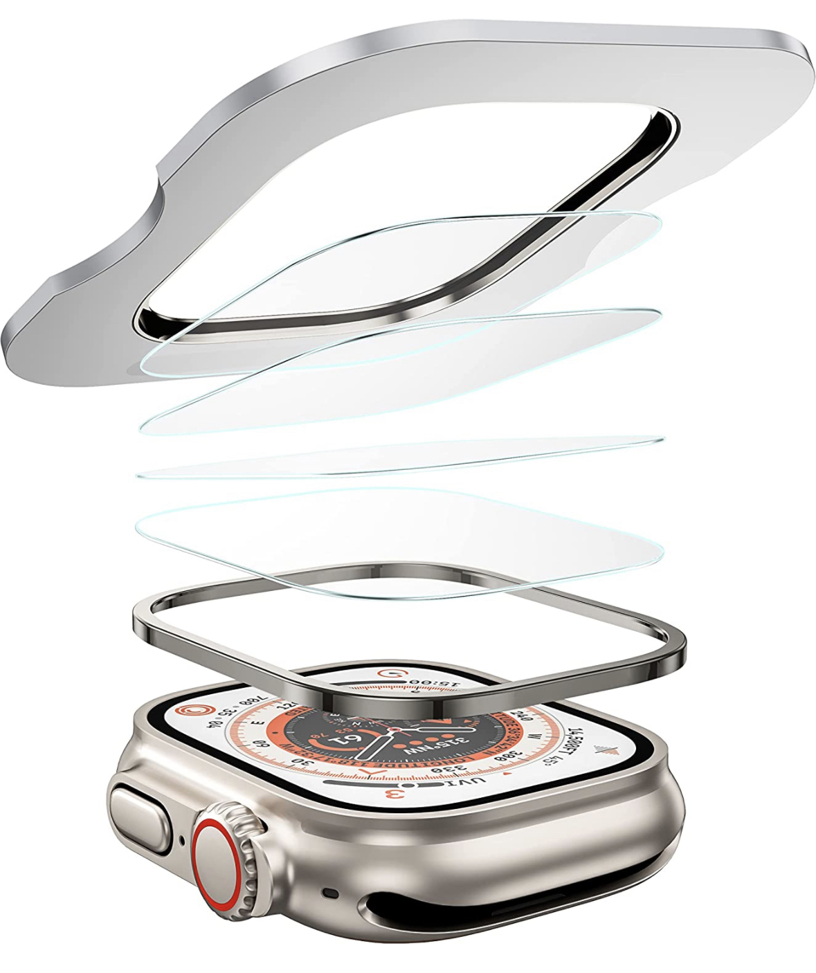 Hoerrye for Apple Watch Ultra 2 / Ultra 1 Screen Protector 49mm,[Titanium Bumper Case] [with Positioning Frame] 4 Pack Tempered Glass Film Full Coverage Protective Face Cover for iwatch Accessoriesamzn.asia