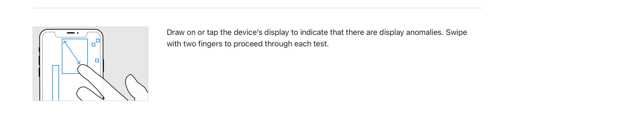 Basically, all the diagnostics test the Apple store would do on your device, Apple is now letting you do on your own. As far as the display test, I believe it's only checking for dead pixels.