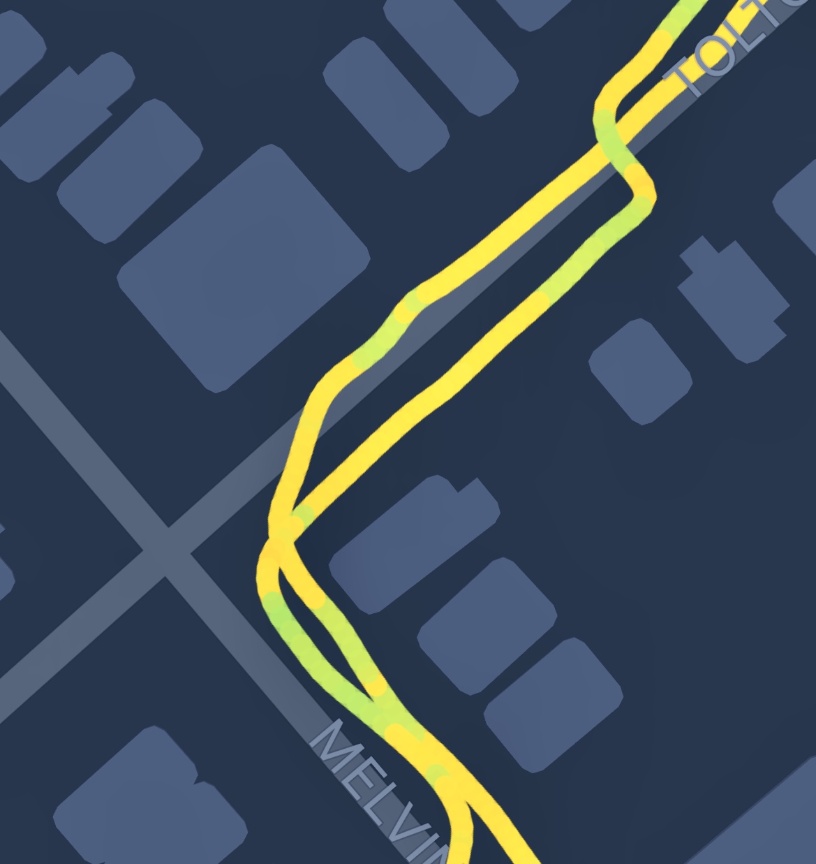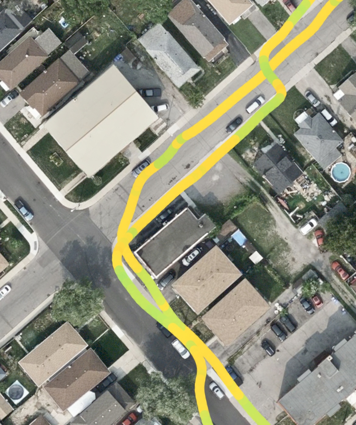 This shows the GPS drift, I was on the road clear area