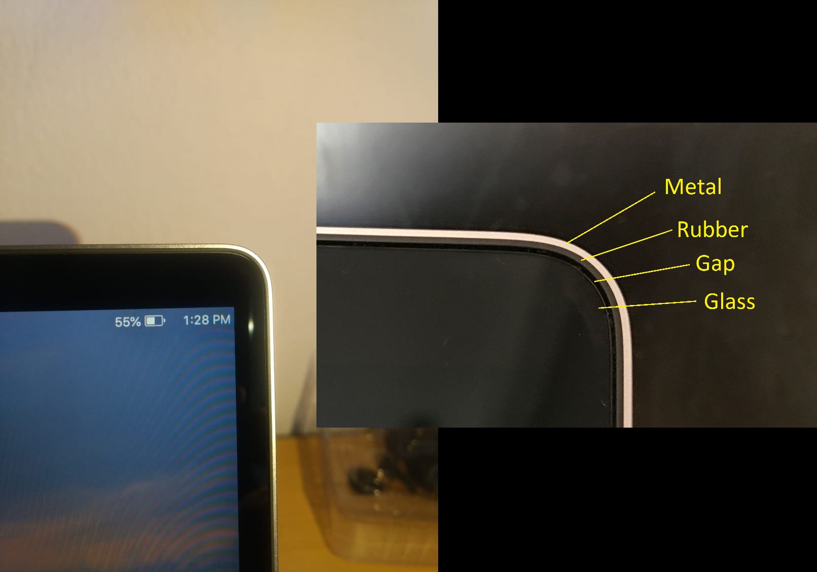 The top 2 images i grabbed from online since they had a clear picture of the gap. This bottom picture is from my Macbook Air M1. it's very hard to capture an image of but i pointed the cursor at the spec of dust to make it a bit easier to spot.