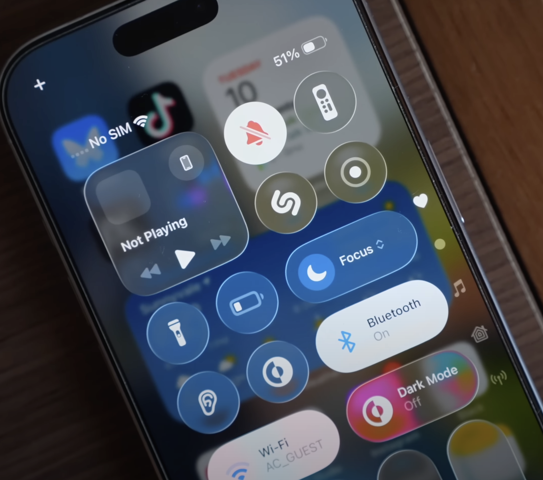 Widgets that you have on the Lock Screen have the same translucent look, as do the quick access buttons on the bottom. Notifications are glassy and see through, and you can see hints of your wallpaper behind them.