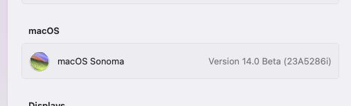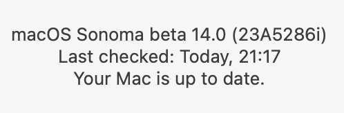 The image you posted shows that your build is 23A5286i which is beta 3, several builds behind 23A5301gYes, I have been reading but my M1 mini as per photo 23A5301i like mine is two updates in the future?