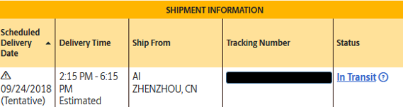 Scheduled for a Tuesday 9/25 delivery. Does anyone know where we go from ZZ? Is it Shenzhen? If so, there's a flight scheduled to leave ZZ for Shenzhen at 6:10am CST (a little under 3 hours from now). It will be interesting to see if we get on that.