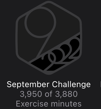 Seems like the September Challenge was brutal for a lot of us this timeI have to do 8.74 hours of 'workout' today to get the month. That was after only getting 10 minutes for a two and a half hour mowing experience. I guess it gives credit if the heart rate is over a certain level? I took a beating from all of the rough spots, but that was all I got. Had to lift some weights to generate enough to get the day. So 9 hours of exercise, today? Feeling like it would be climbing a wall... First month, so far this year, I'll miss.![]()
