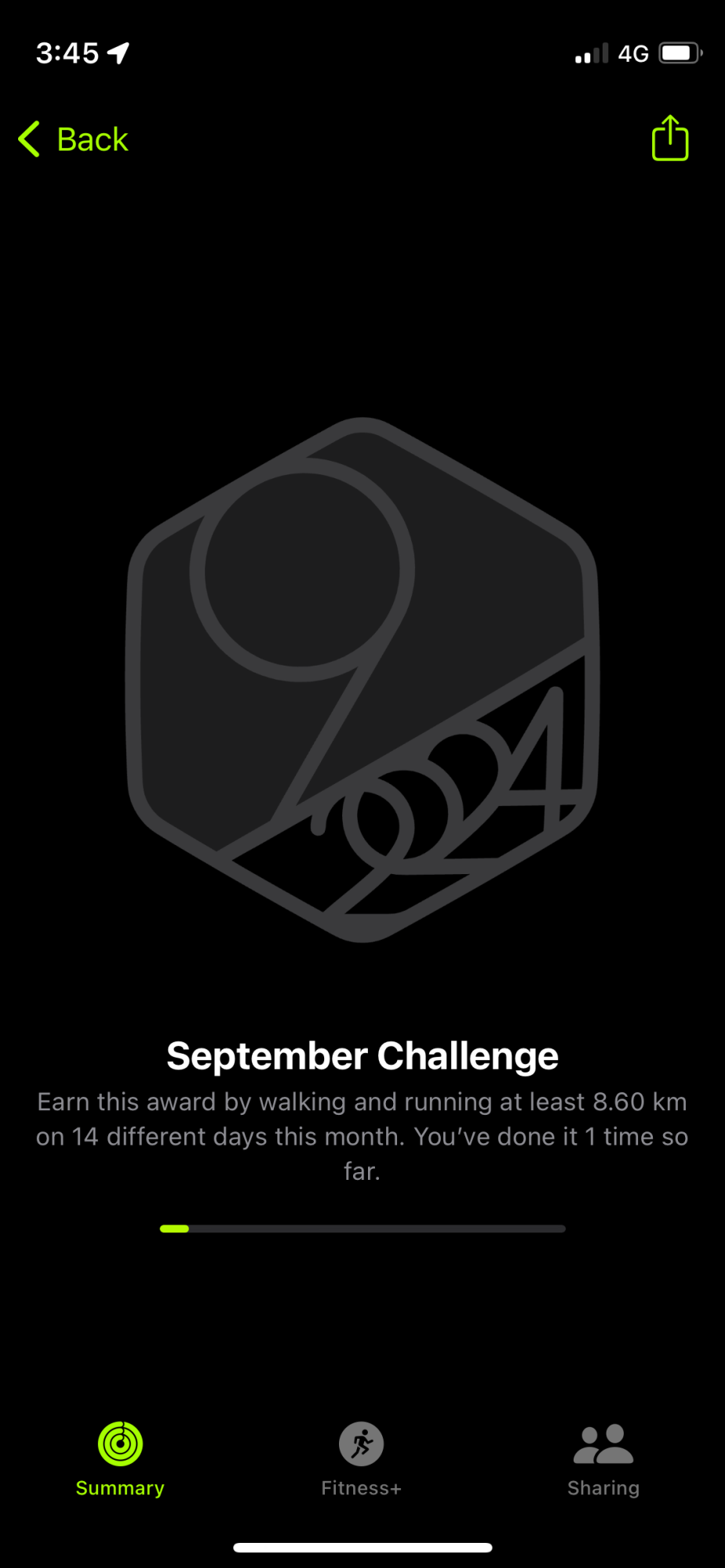 Mines is to record 3 walking workouts. Once the Labor Day heat wave is over it’ll be time to put on my AirPods, do some Time to Walk walking podcasts and go for a walk in the park.Unless I suffer a catastrophic injury.. this is even more insultingly easy than usual