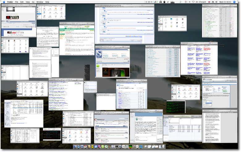 Wow...by that level of multi-tasking am I right in presumming you are of the female variety?! (If not, you must be some superhuman male to truely use all of those at once!)y0zza said:Desktop Exposé:All windows Exposé:![]()