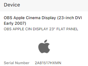 I popped that serial into Apple's service management system (I have access as an ACMT for an AASP), it returns as obsolete but as an early 2007 Apple Cinema Display
