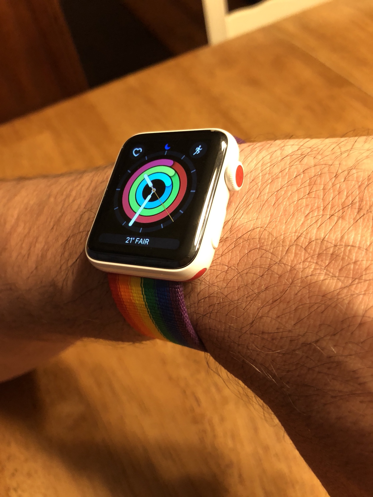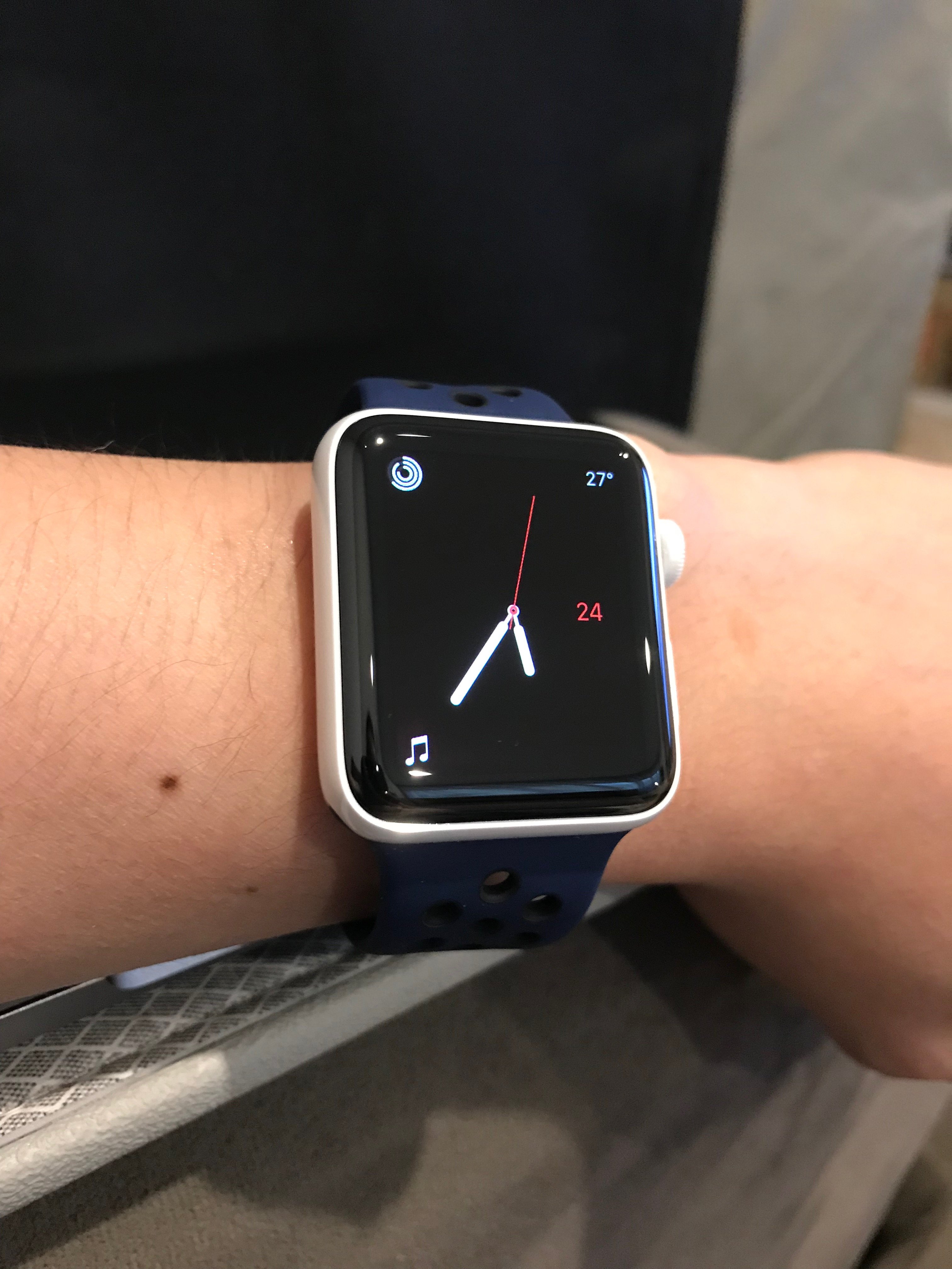 That combo looks very nice. Would you happen to have a scale where you could weigh the watch and band together to get an accurate total weight?Bought the Nike Obsidian/Black sport band and I love the dark blue colour contrasting against the glossy white case!