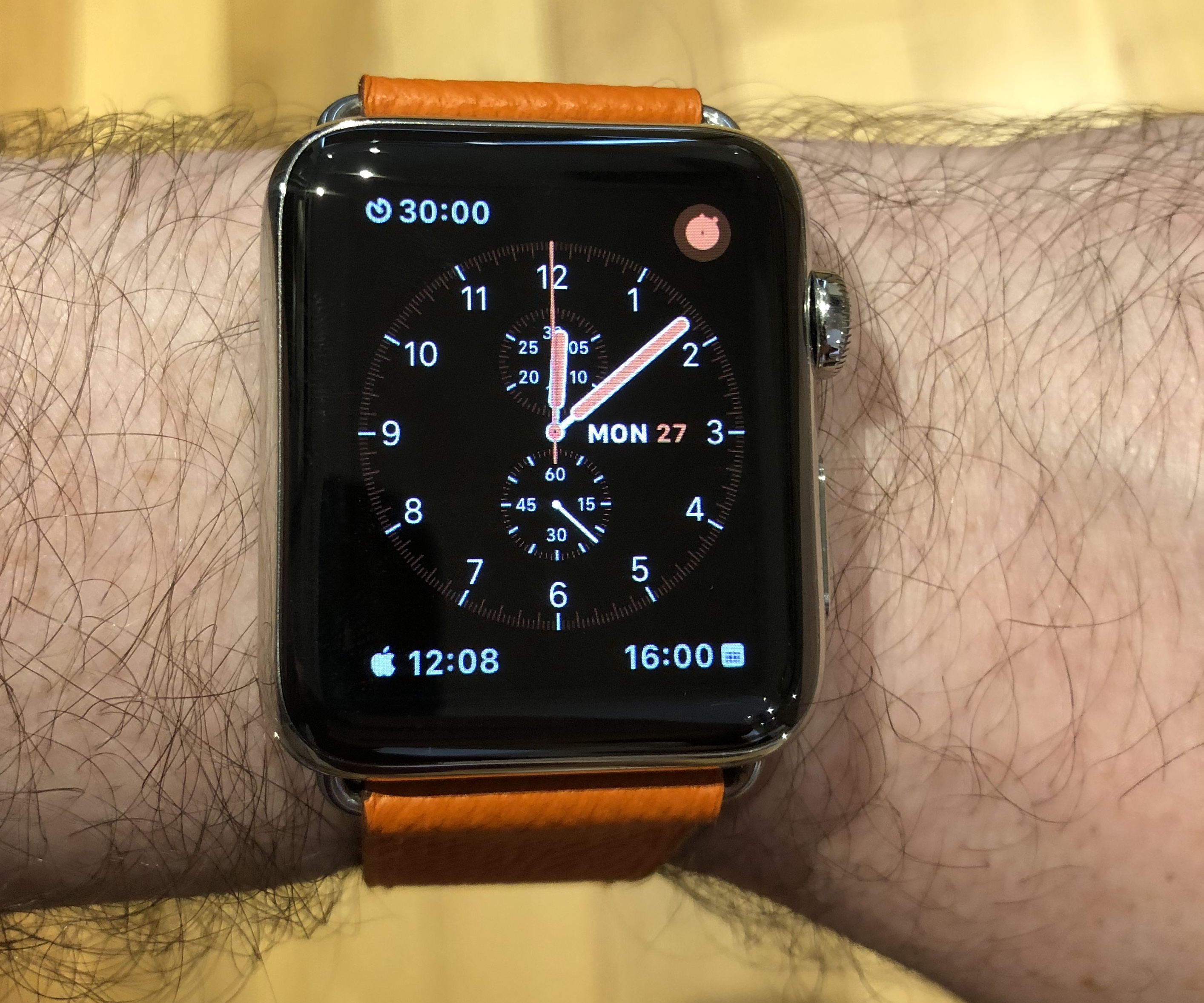 You’re probably with me so far. Here’s where it gets maybe a little weird and surprising. Although I didn’t like the specific Hermès watch faces, you also get Hermès orange as an extra colour for the regular watch faces. No huge deal, except that the Chronograph face looks especially good in Hermès orange and there’s no way to recreate it with other colour options. (For example, you can choose Hermès orange for the Modular watch face, but there’s also a regular orange and it’s pretty indistinguishable.)