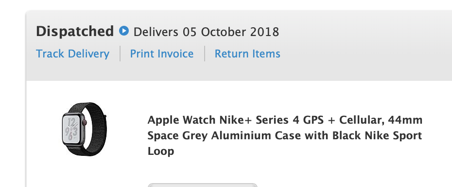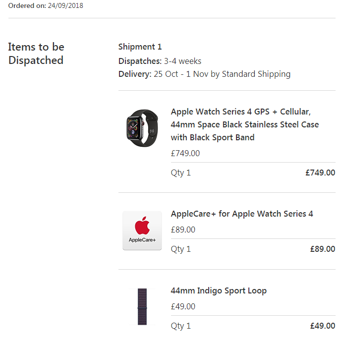 Yeah aluminium are more readily available. Its the damn SS that are in short supply.October 17th-24th estimate, just changed to PFD. 44mm Space Grey, sport band.