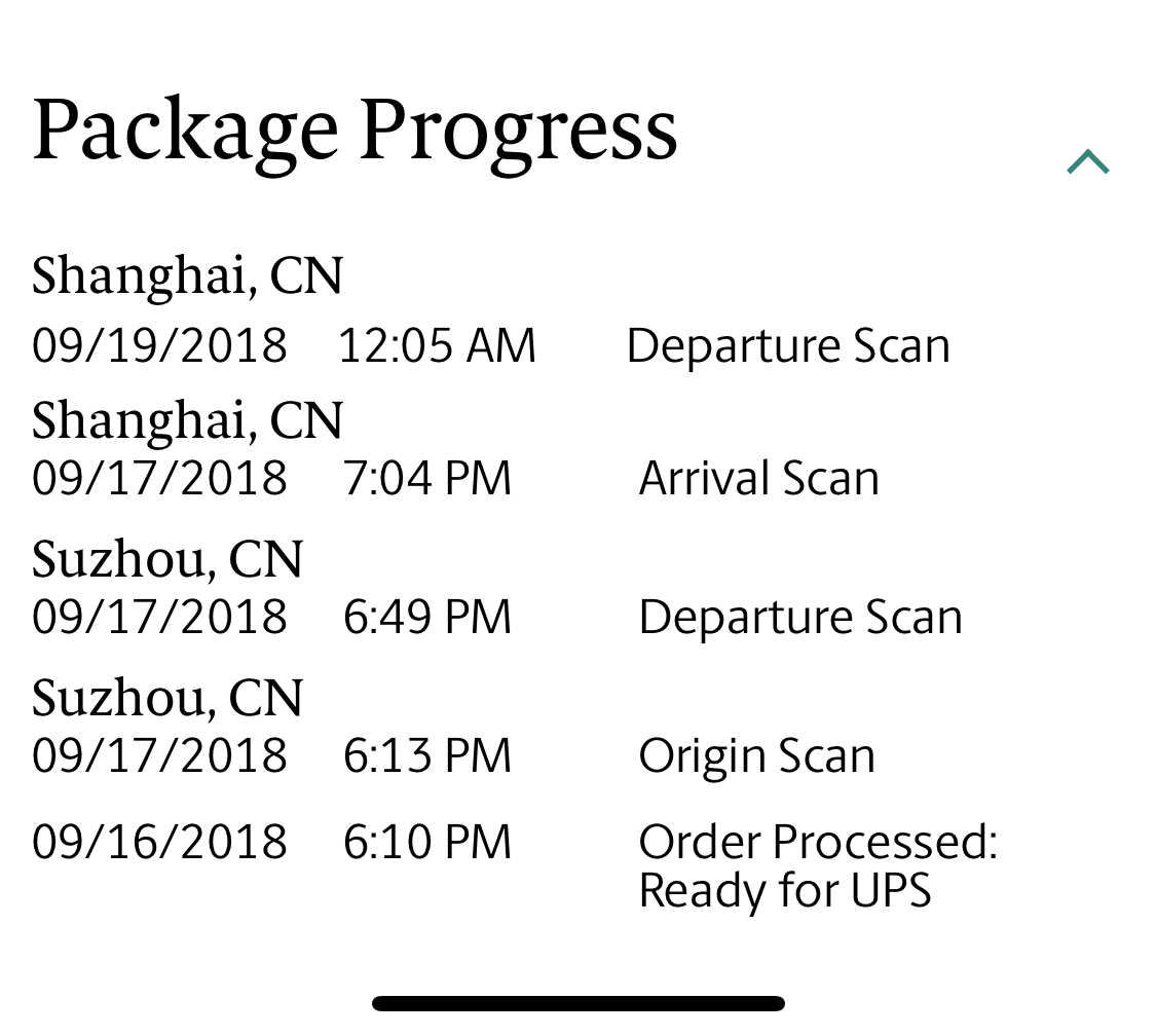 China 09/18/2018 5:24 A.M. Order Processed: Ready for UPS