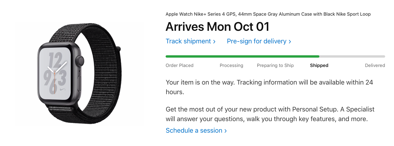 My Nike version has been showing ready for shipment since Sunday. No change to that status since. However it is still showing that it will still be delivered on 10-5. But I am beginning to doubt that will happen