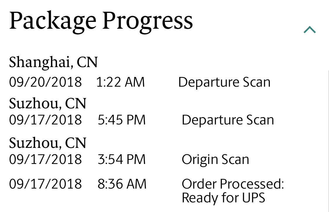 Thank youYou don’t need a tracking number if you are in the states, signup for My UPS, log in and it will magically be there if you have a 9/21 delivery date and are curious. You are either sitting with me in Shanghai or you’ve already hit anchorage.