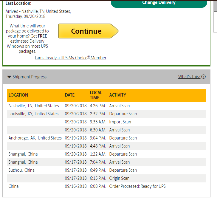 already scanned in on my end!! woot! now if only I could get UPS to get it to my house before 7pm tomorrow. I hate waiting ALLLLLL dayYes. Now we are awaiting the next scans from Louisville since it should be arriving soon.