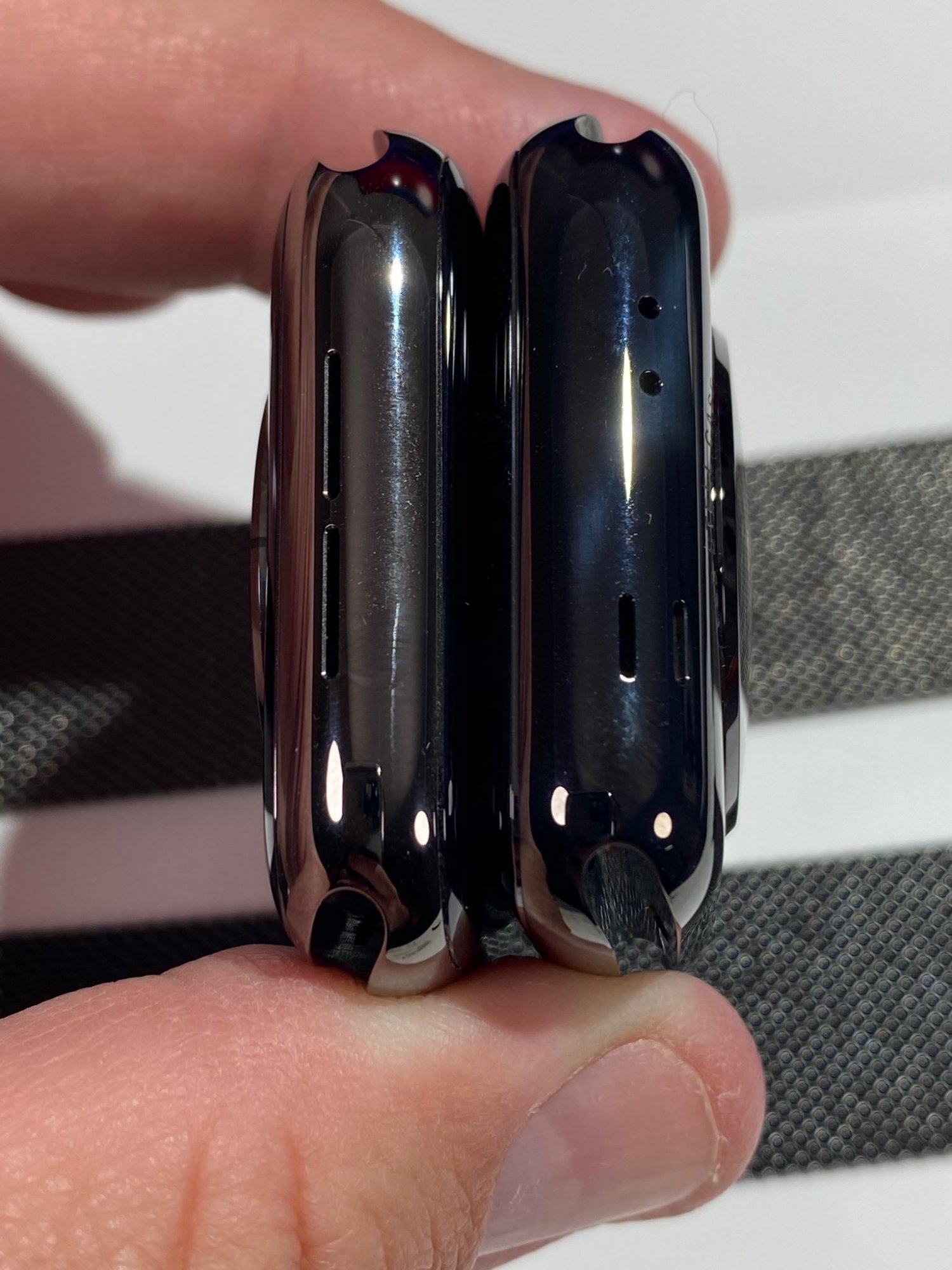 Hermès space black series 5 was black as heck, wet/ shiny looking and I loved it. Tbh I don’t even like shiny stuff much or piano black but it just looked luxe and rich. It’s hard to go back to aluminum, this time I ordered the blue and the space black Hermès44, wondering if it will come in the same all black packaging like last year. It seems like the black Hermès sport band is confirmed