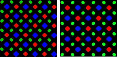 The size and shape of the sub pixels are completely different.The displays are different but the pixel arrangements are obviously identical (diamond arrangement to be exact as opposed to, say, RGB arrangement)