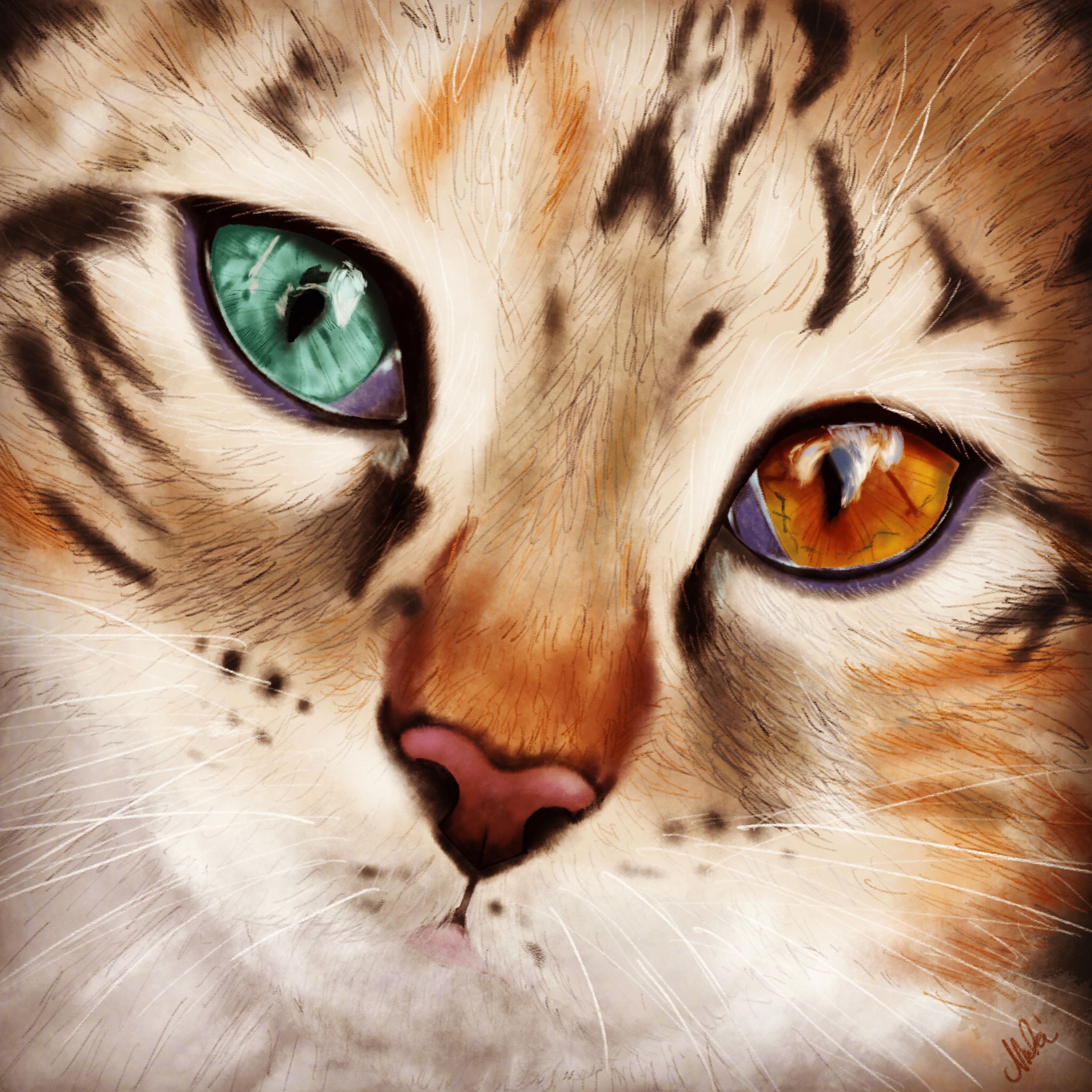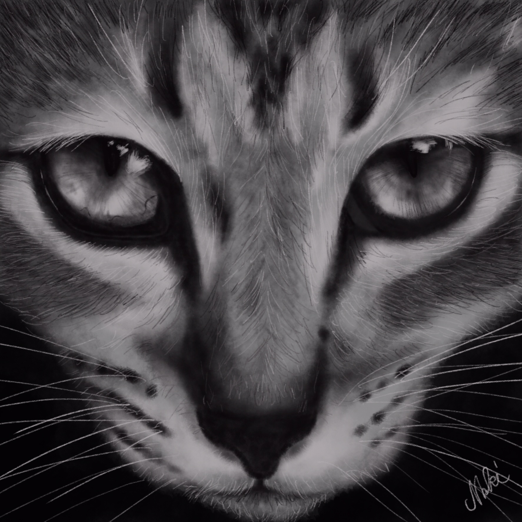 Few days ago I posted another cats eyes black and white drawing(by Apple Pencil/ iPad), I'm reposting here with my hand drawing cats portrait on paper, so you can compare.