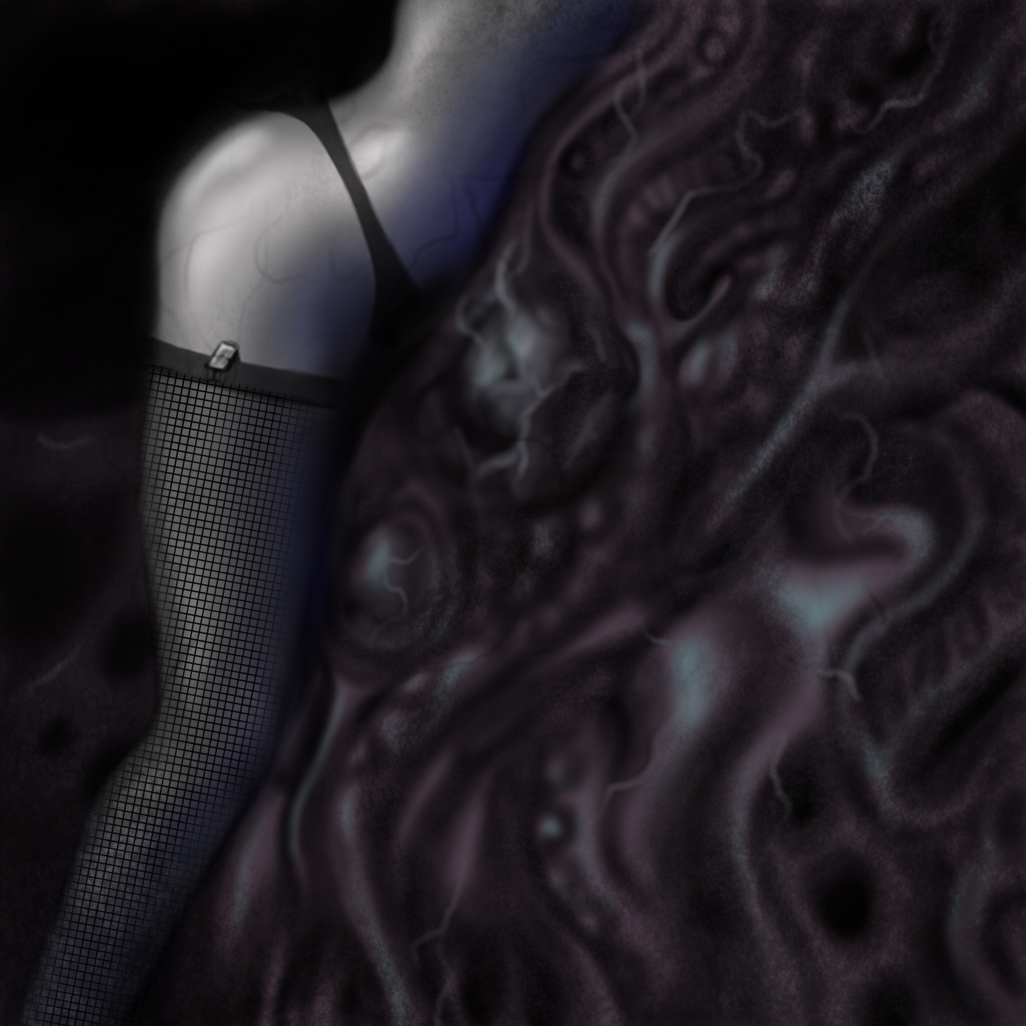 Laziest fishnet stockings in history. first is a paintover of a photo I took with the contrast etc spiked, second is wet brush and charcoal type things in procreate.