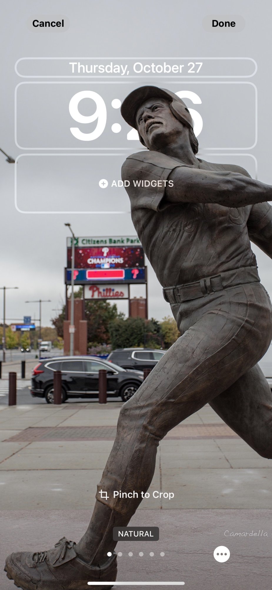 Here is mine. Go Phillies!!!!I grabbed this shot yesterday, wondered how it might look as Depth Wallpaper. Umm...interesting, didn't expect the head to completely cover the minutes. At least I'll know the hour?? LOL. This clearly won't work. 😆