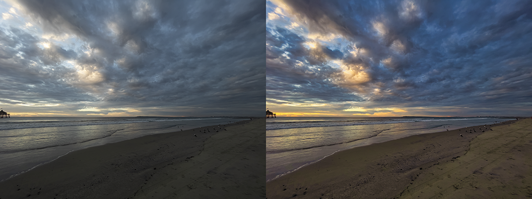 first as shot second edited...see how easy to retrieve the colors of the bike(red, green), the light on the scene and some blue in the sky