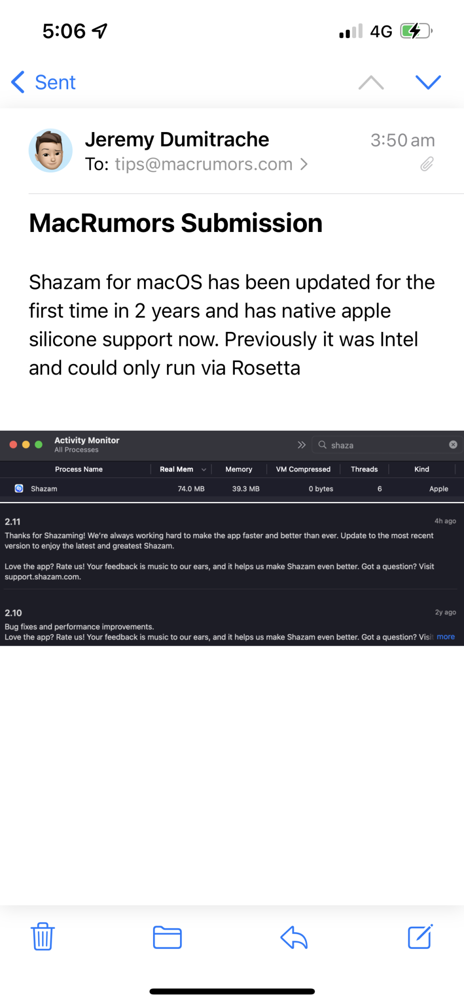 The Shazam app for Mac is now using Apple's universal binary so it runs natively on both Intel Macs and those that have Apple-designed chips inside.