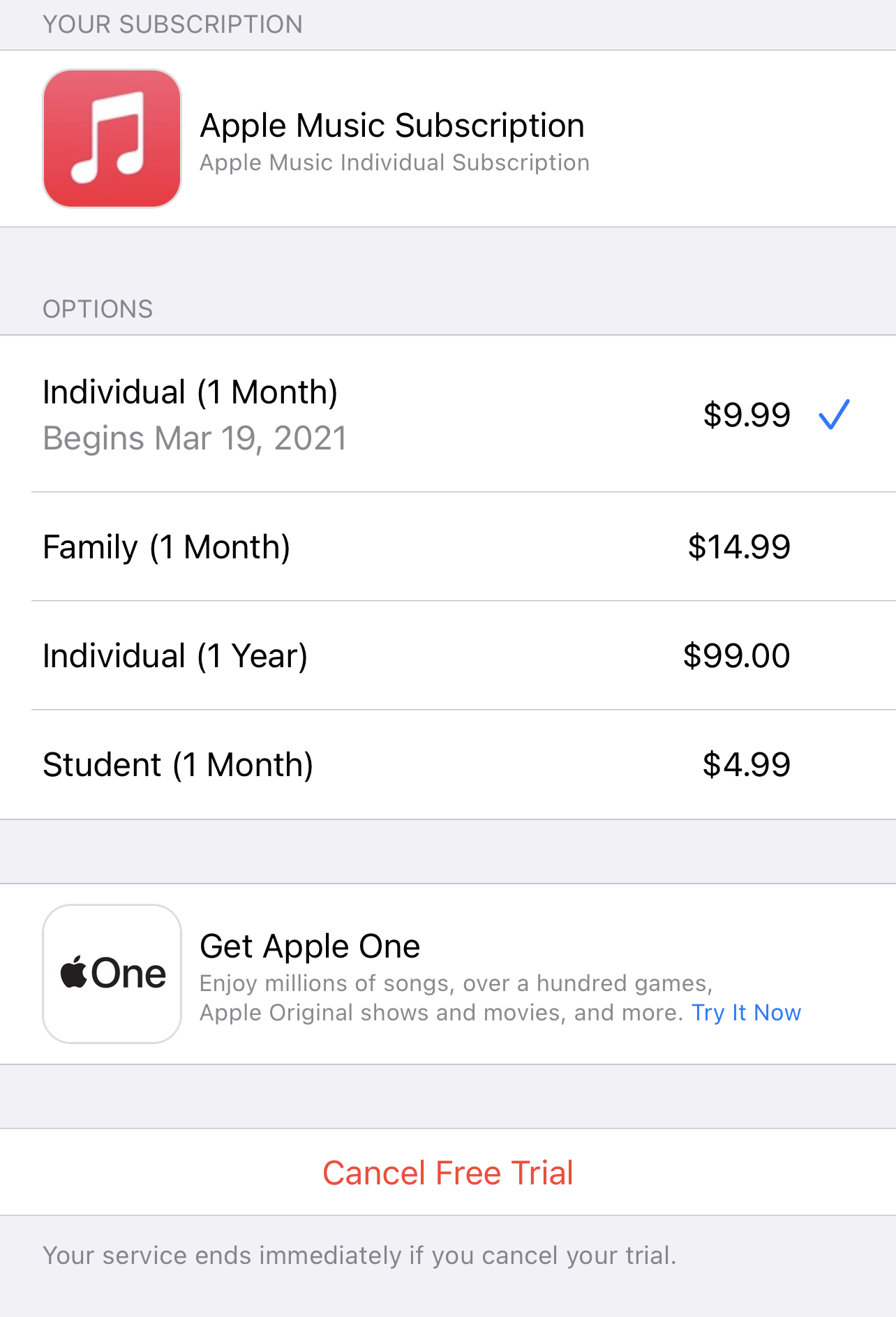 Great trick I use is making a new AppleID and activate a trial and then add the new user to my family sharing group. You can almost have infinite free trials this way. When the trial expires remove the user and repeat with a new promo.