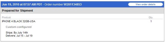 for my 6/23 11:36 AM PDT order! Now I'm waiting for the Out for Delivery status update. But I'm still feeling snakebit after my 6/15 order was cancelled, so I'll believe when I get home from work today, open the box, and see it with my own eyes.