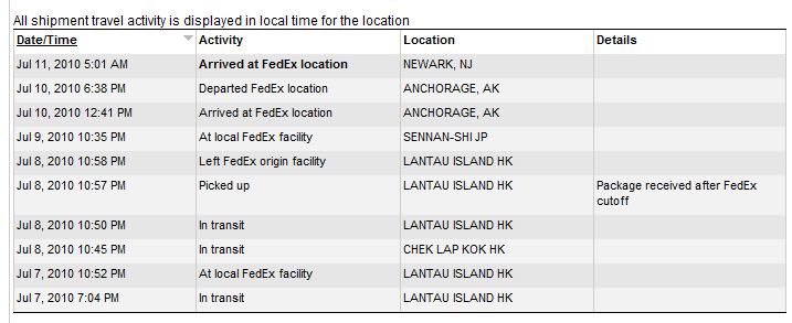 7/12/2010 8:04:00 AM BRONX, NY, US Arrived at FedEx Destination Location
