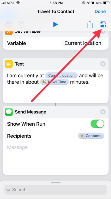 You set this up by selecting the settings button at top right of your Shortcut