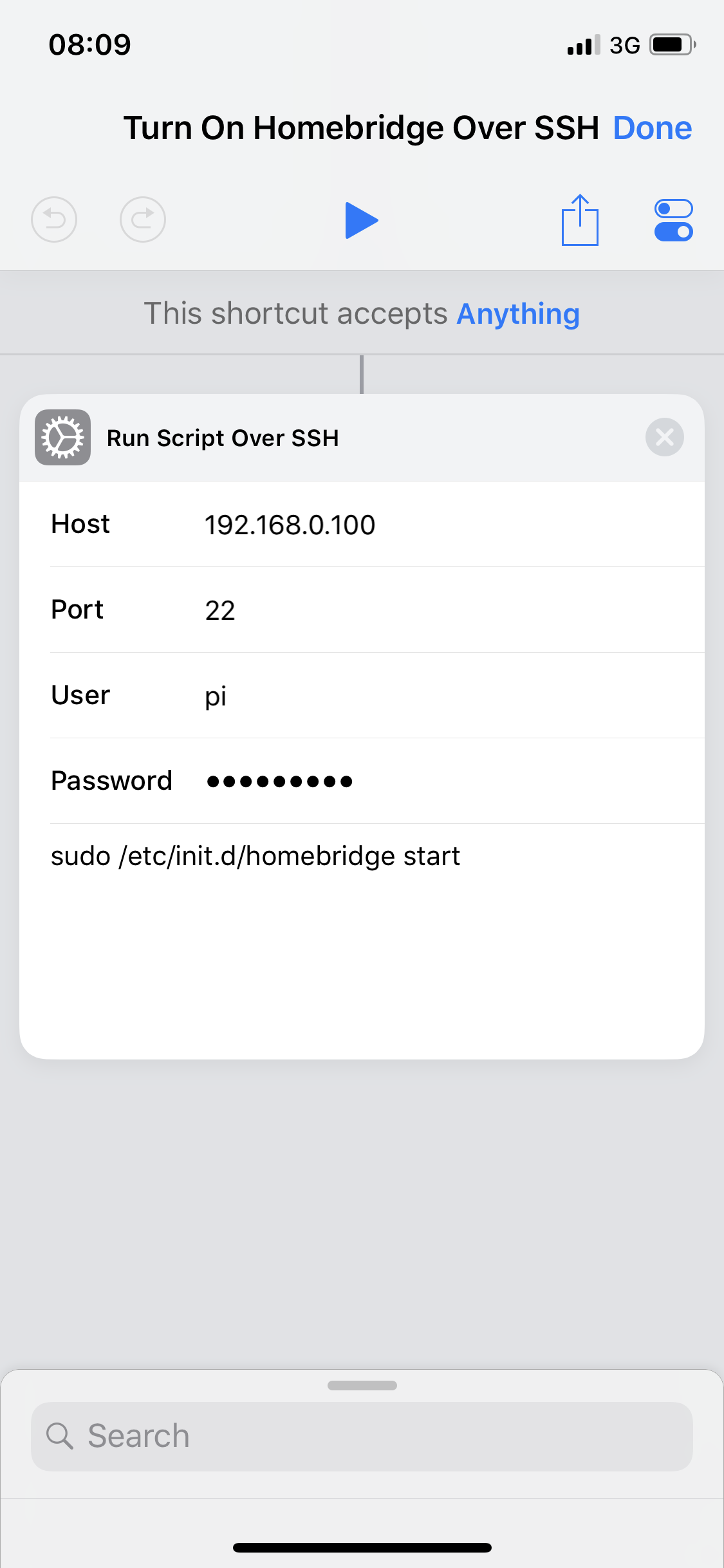 I’ve set up a simple shortcut to turn on my Homebridge server with Siri.
