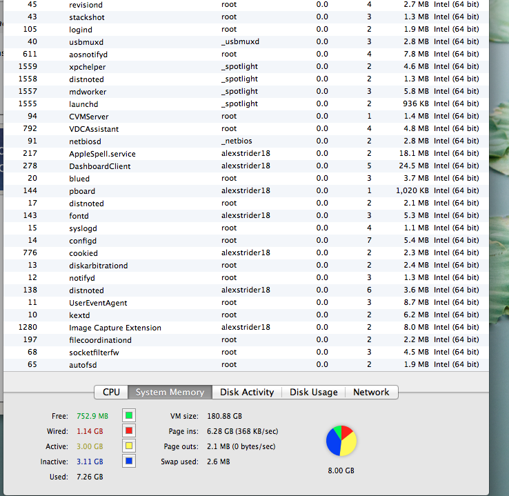 its gotten worse since then ,. and I'm still only using the safari, activity monitor and iPhoto ,.. stopped using the secure trash and deleted most the screen shots ages ago ,.. and when its JUST the activity monitor and finder ,. its using 3.88 GB :-0