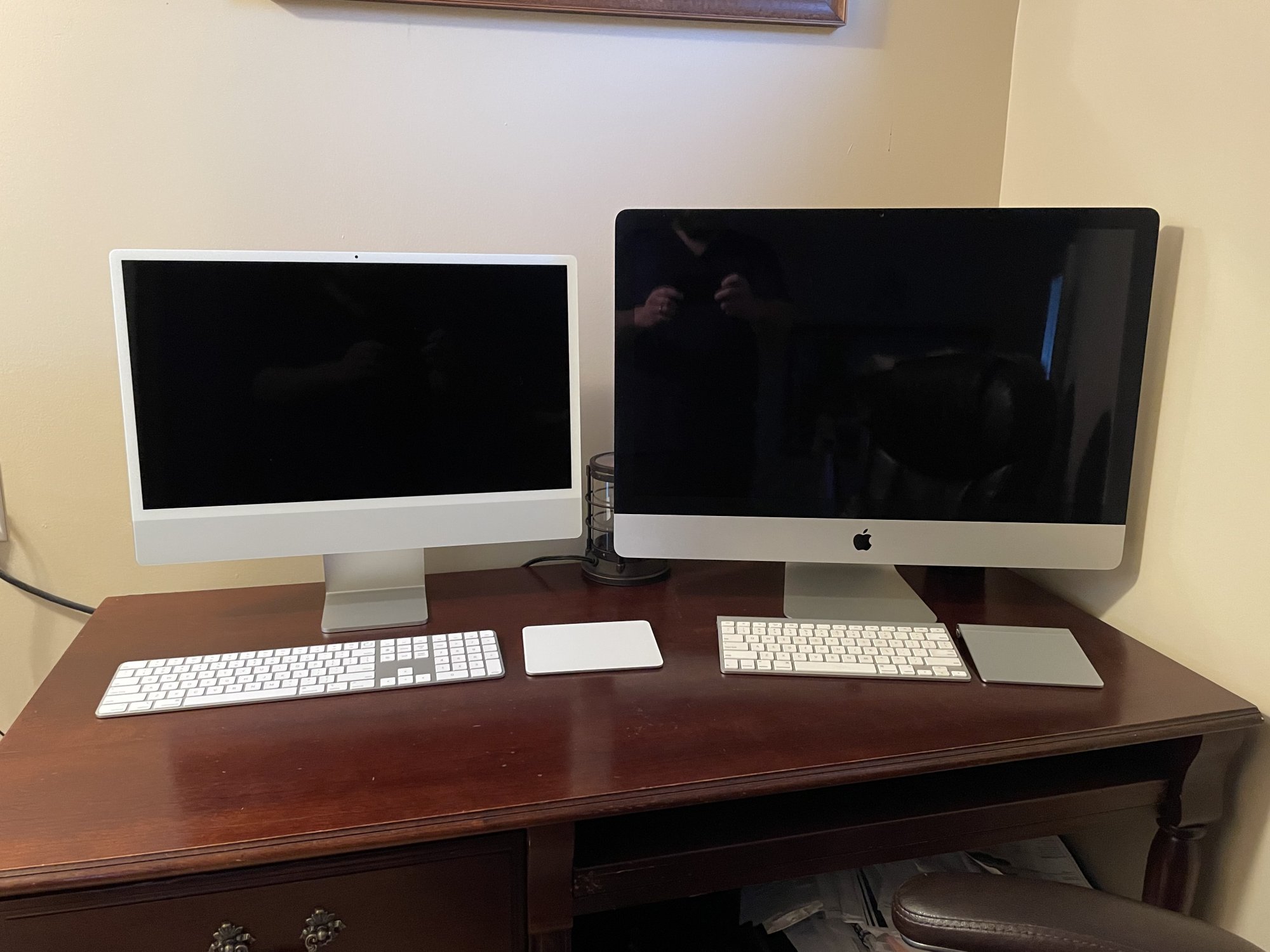 Thats a beautiful wallpaper. Do you mind sharing?Here's my silver! This is my first Mac in a long time. I've been iPad-only since late 2016. I actually still could be, but I recently started a new WFH job where the ability to view multiple windows and documents at once on a larger screen is extremely helpful. I was actually considering getting a 12.9 iPad for that purpose but then Apple announced the iMacs and I knew this was exactly what I needed. I've been using this all weekend and I can honestly say I've never had a better computer. It's just so fast, the screen is incredible, and it's absolutely perfect for what I need to do. Using it with my 10.5 iPad Pro via Sidecar is just so cool. Together they feel like one big connected machine (which I suppose they are) and it brings touch capabilities directly to the Mac, in a way, for things like signing documents. I love it.
