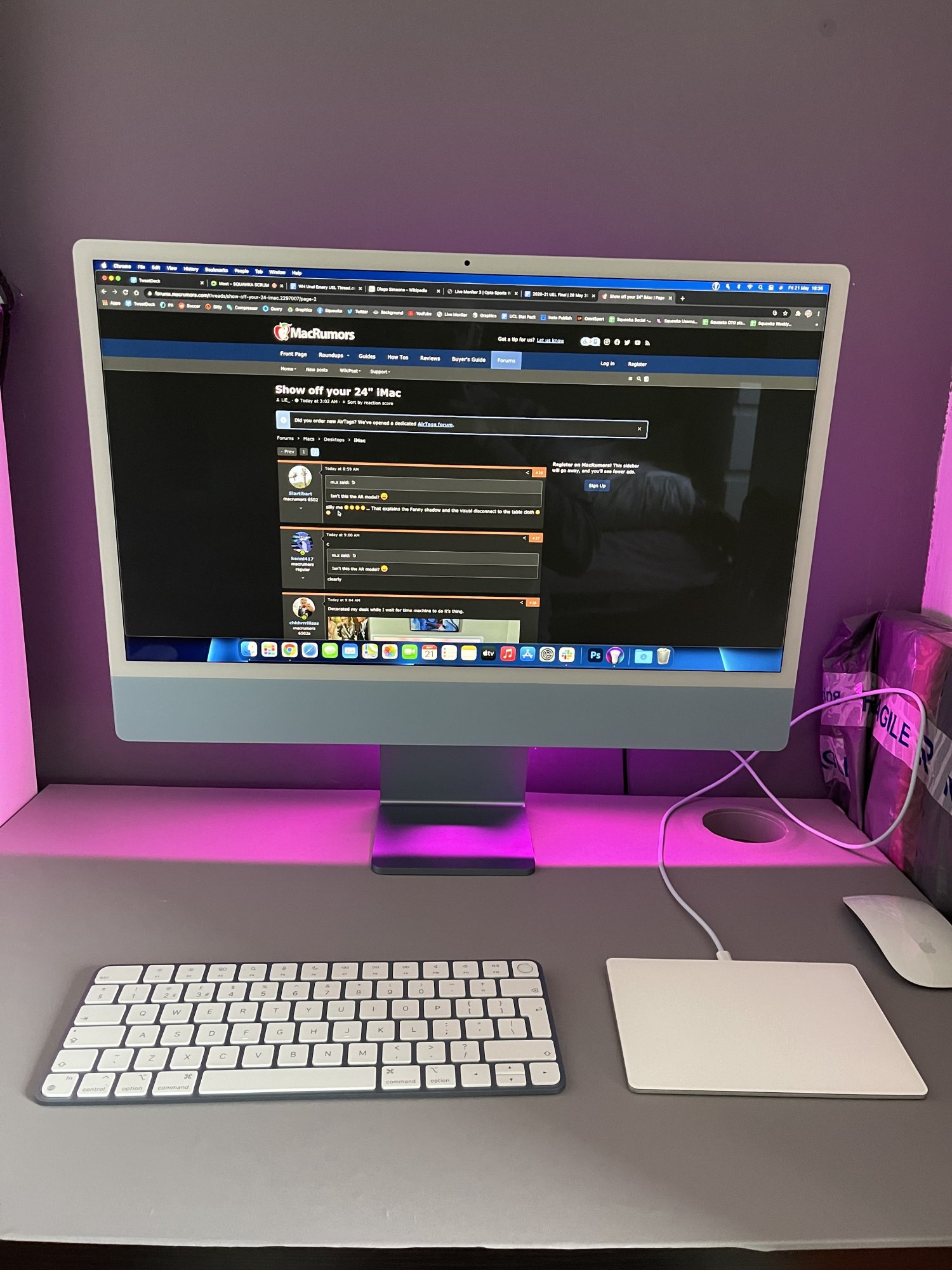 Same with the trackpad. Had to just end up buying a silver one from a store. Digging the set up thoJust got mine! Love it so far, upgraded from a 27" and am really enjoying this size much better -- the color looks great as well. Can't wait to start testing out the M1 in a little bit. Wish I got the matching trackpad as well since I don't like the Magic MouseView attachment 1778814
